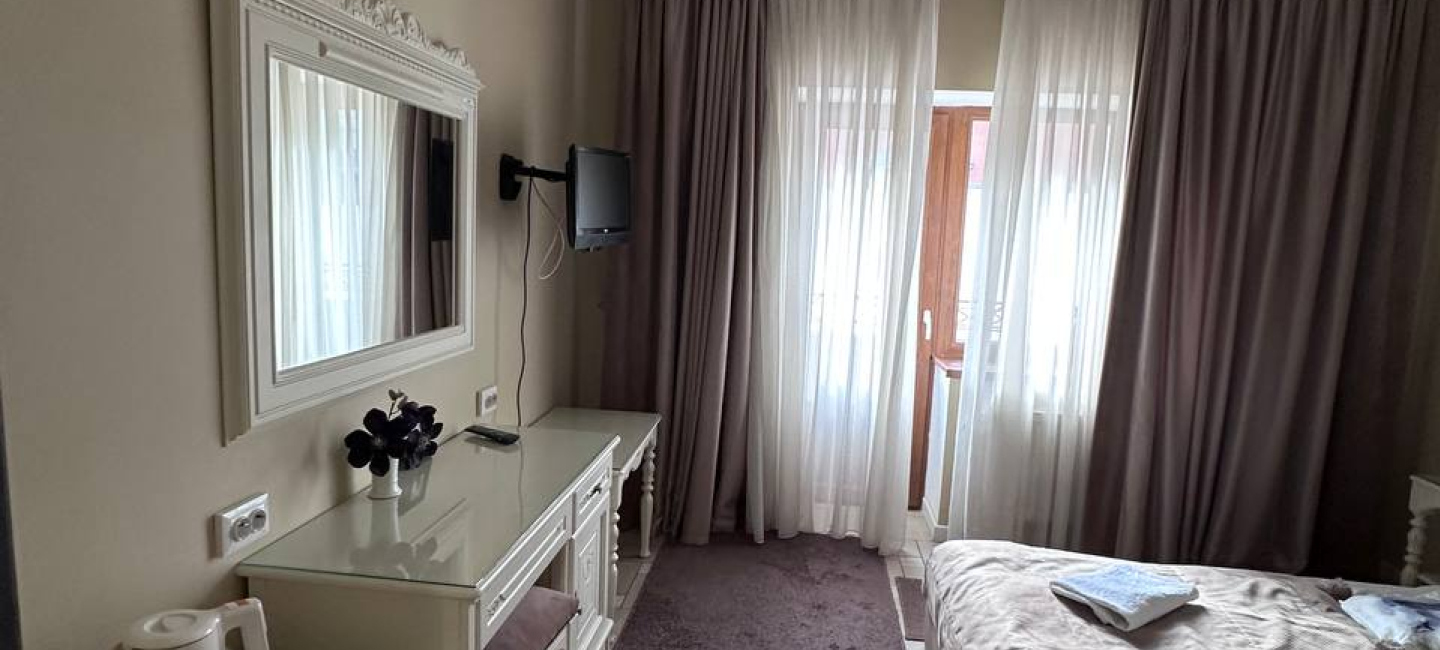 Номер складається з санвузла, спальні та балкону.