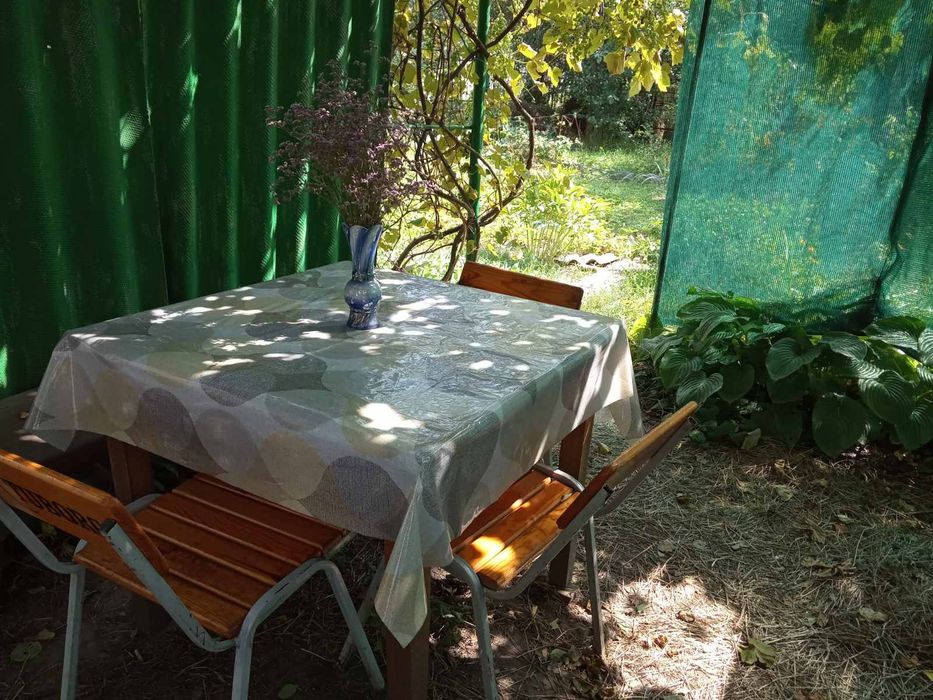 На участке летний душ с горячей водой, есть и летний душ, 2 сарая. Общая площадь дома 52 м2, кухня 10 м2, участок 4 сотки. В цену входит мебель, два холодильника, садовый инвентарь.