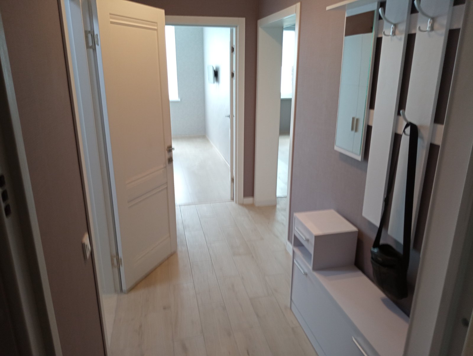 Сделан ремонт (Штукатурка стен, потолка, проведена электропроводка, подключена гарячая, холодная вода, канализация )Уже облицован санузел, душевая кабина, и облицована кухня. Сделаны натяжные потолки.