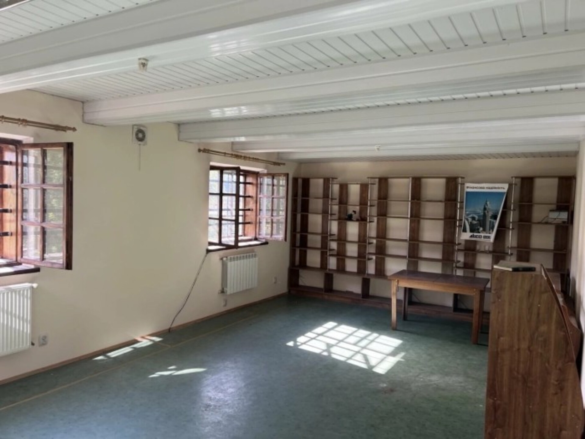 Будинок має три поверхи. На цокольному поверсі розташоване кафе: зал, кухня, складське приміщення, туалет. На другому поверсі були торгові місця, а на третьому планувалося облаштування окремих ізольованих місць (кабінок для кафе). Загальна площа приміщення становить 246 м².