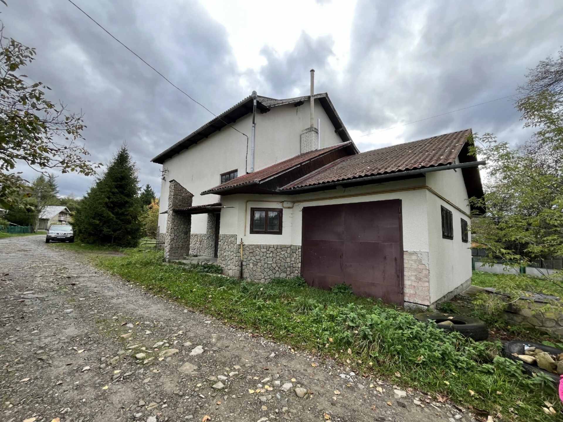 Пропонуємо вашій увазі двоповерховий будинок з гаражем, який використовувався свого часу як кафе та комерційні приміщення. Будинок знаходиться в селі Заріччя Надвірнянського району, неподалік від центральної траси Н09, яка веде на Буковель і далі в Закарпатську область. Відстань до траси — всього 100 метрів центральною вулицею. Будівля може бути використана як кафе, міні-готель або ресторан, залежно від бачення нового власника.