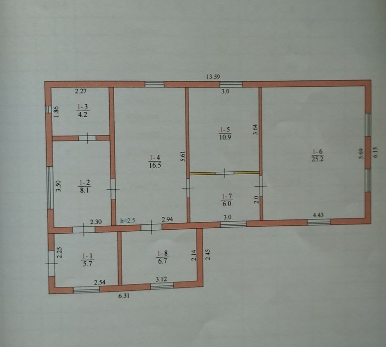 В доме по плану 3 раздельные комнаты и 1 проходная. Санузел совмещённый.