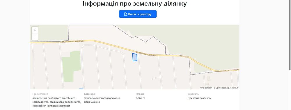 | Земельна ділянка: |