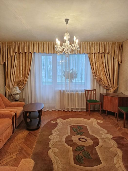 У квартирі три великі кімнати санвузол ванна великий коридор кухня, два балкони, частково мебльована. Також є все необхідне для життя пральна машина холодильник мікрохвильова піч.