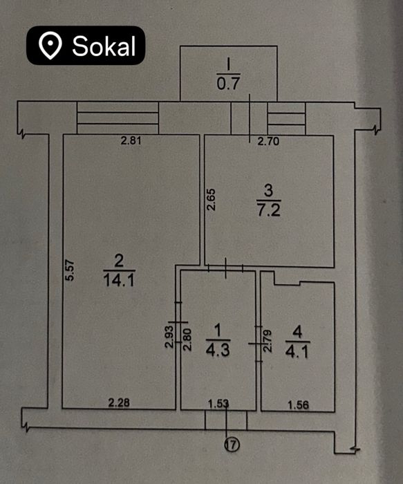 Продається 1-кімнатна квартира 0 циклу у місті Сокаль, до центру пішки всього 5 хвилин, район 5 школи