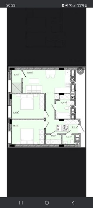 Франківський; Продам двохкімнатну квартиру; Продам 2-ох кімнатну квартиру в новобудові,загальна площа 62м²,кухня-студія,дві ізольовані кімнати,великий коридор,два санвузли,гардеробна. Здача будинку запланована на кінець 2026 року.Власник.