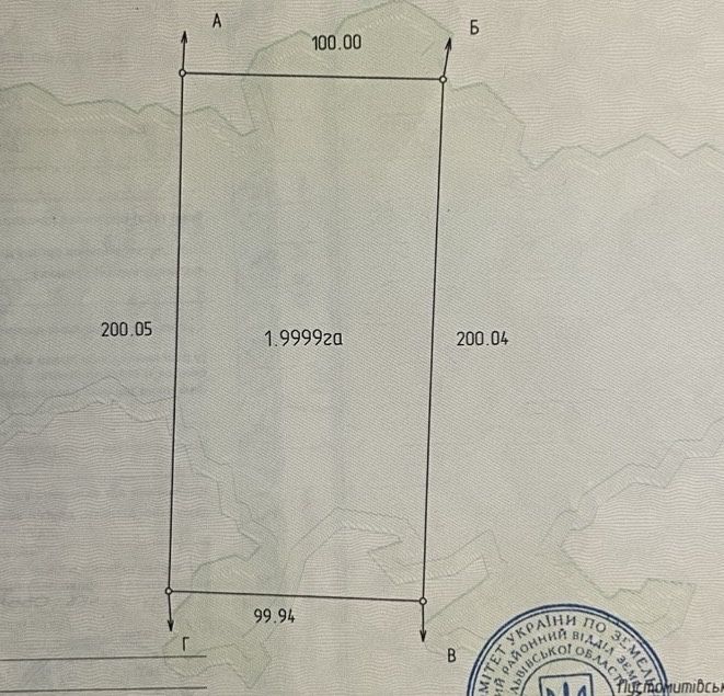 Продам ділянку 2га ОСГ 6 км від м Львів в напрямку Стрия; Ділянка правильної прямокутної форми 200х100м Поруч Дачне господарство. До траси Киів - Чоп 200 м