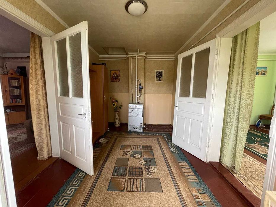 Будинок, 100 кв.м, збудований у кінці 1980-х років. Планування традиційне на час побудови: ґанок, коридор, чотири кімнати (прохідні по колу), горище. Вікна металопластикові, опалення газом (котел). Віддалений від основної дороги.