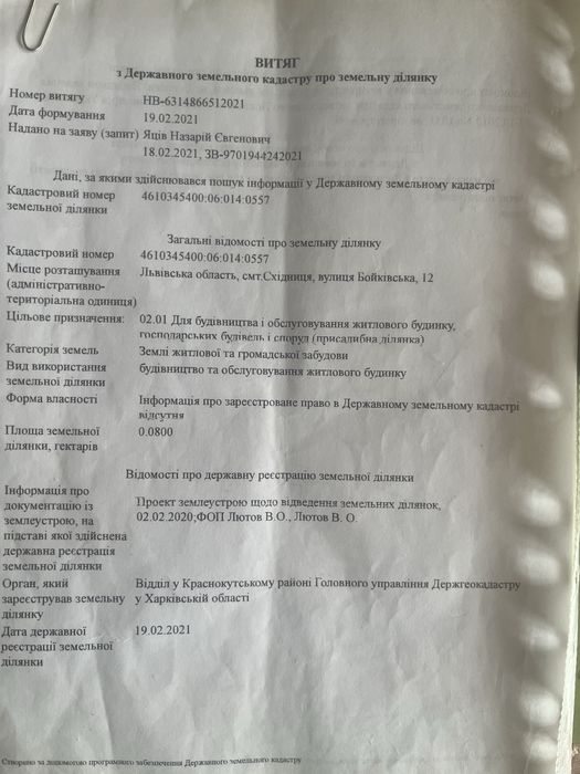 Земельна ділянка; Обміняю земельну ділянку в смт. Східниця на двокімнатну квартиру за всіма питаннями телефонуйте за номером +38********59