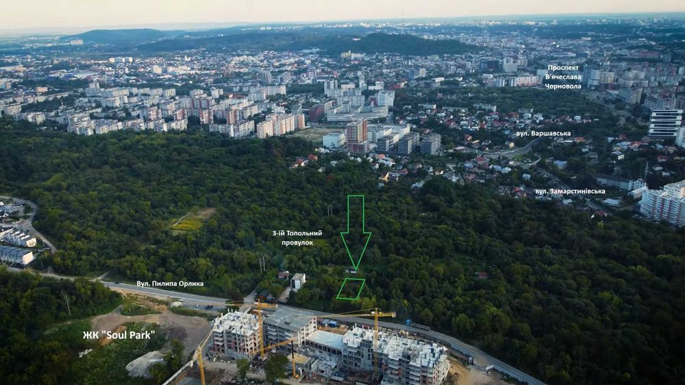 Шевченківський; Ділянка з панорамним видом на Львів біля ЖК Soul Park (5,39 сот); Земельна ділянка 5,39 сот з панорамним видом на центр Львова біля ЖК Soul Park.