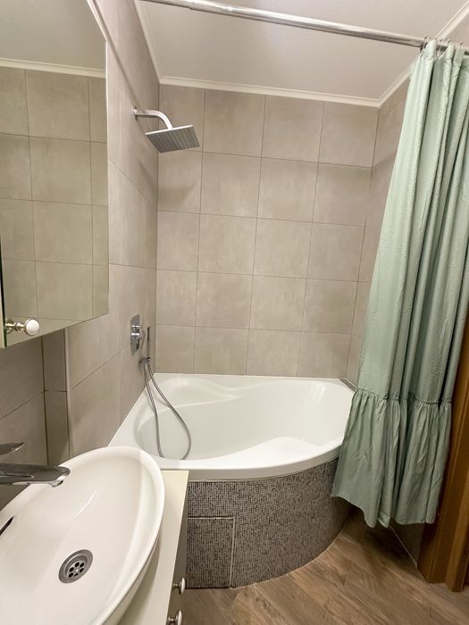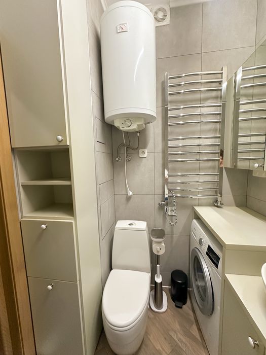 Ванна кімната: ванна з душовою лійкою, тропічним душем, бойлер, пральна машина.