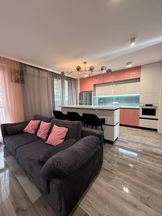 Простора та світла квартира з сучасним ремонтом, повністю мебльована та обладнана всією необхідною технікою для комфортного проживання. У квартирі два санвузли, що дуже зручно для сім’ї або кількох мешканців.