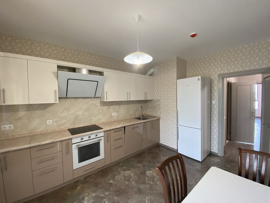Кухня 13 кв.м. з лоджією. Вбудована кухня з технікою, холодильником Bosch, посудомийка Whirlpool, підігрів підлоги Devi.