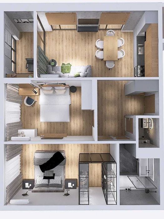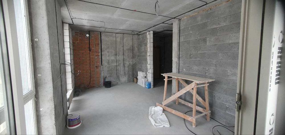 В квартирі зроблена електропроводка та невелике перепланування санвузла (є фото плана від забудовника й трохи змінене - то як зараз). Також санвузол поштукатурено (підготовлено до укладання труб й далі плитки). Квартира планувалась для себе, тому почали робити ремонт, але війна змінила плани.