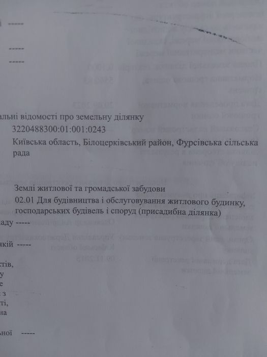 Гарне капітало вкладення,ціни на участки зростають,бо район відбудовується активно,в межах Білої Церкви біля парку Олександрія, сама земля належить Фурсівській громаді,всі документи в порядку,приватизована,змінена на 02.01 цільове призначення землі. Цільове призначення земельної ділянки з кодом 02.01 — «Для будівництва і обслуговування житлового будинку, господарських будівель і споруд (присадибна ділянка)». Вона належить до земель житлової та громадської забудови і призначена для зведення та експлуатації житлових будинків, господарських споруд, а також гаражів.