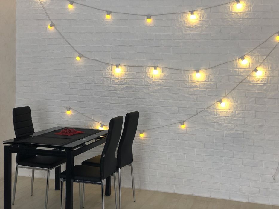 • Атмосфера: Вечерняя подсветка, гирлянды из ламп в обеденной зоне и стильные бра создают неповторимый уют.