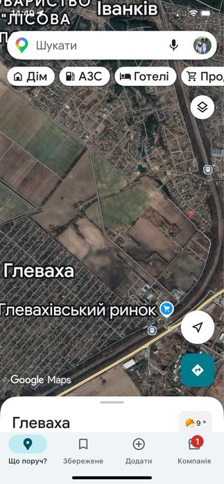 Земельна ділянка під забудову 19 км від Києва; Видовий південний схил в затишному місці, 18,5 соток під забудову, смт Глеваха. 19 км від Києва. Поряд всі комунікації, асфальтний підʼїзд, поряд постійно проживають сусіди. По межі ділянки тече струмок, тому є можливість зробити копанку. Неподалік 500 м каскад озер. Розвинена інфраструктура, супермаркети, базар, зручне сполучення з Києвом.