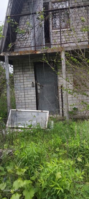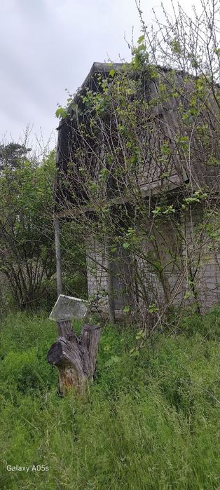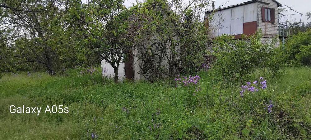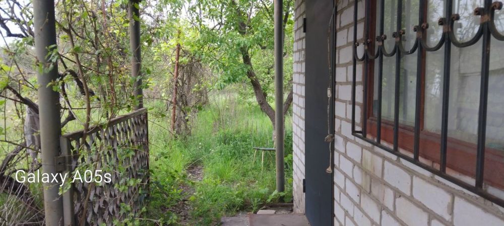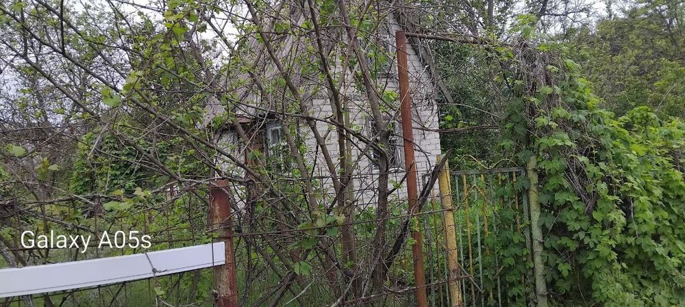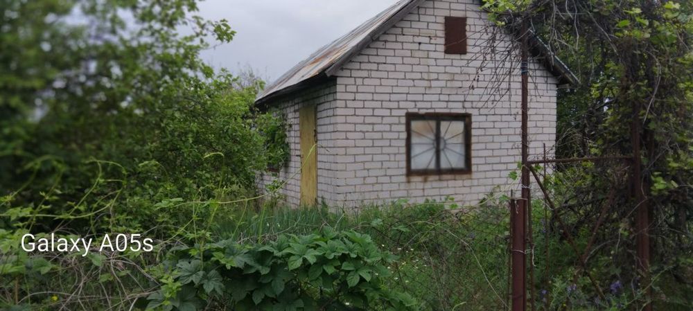Маємо в наявності дачні будиночки; Заміський будинок розташований серед зеленої рослинності та дерев. Будівля має цегляні стіни та віконні решітки.