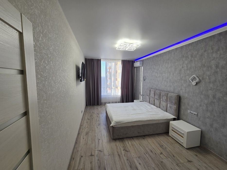 Свіжий, не дешевий ремонт, простора кухня з диваном, величезна спальня, ліжко з дорогим матрацом. 2 телевізора, є Смарт ТБ, відеодомофон, ванна, окремий просторий гардероб. Вся техніка та меблі присутні. Шикарний балкон.