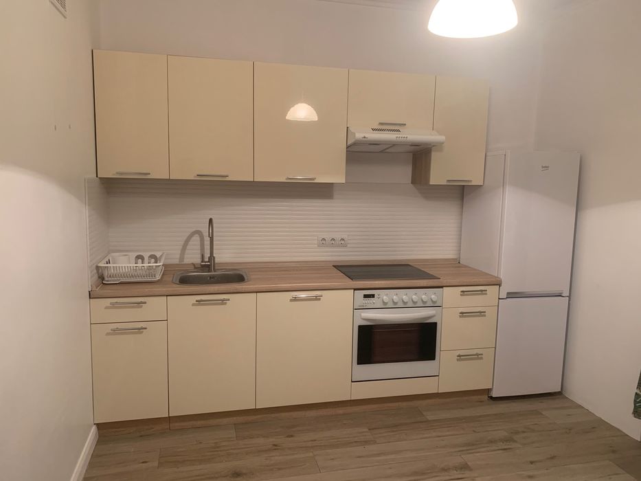 Площа квартири 45 кВ.м. В квартирі євроремонт, є вся техніка, пральна машина Samsung, холодильник, плита, духовий шкаф, бойлер, італійська плитка. Поруч з будинком є вся інфраструктура, магазини, зупинка транспорту на Київ, в будинку своя котельня. Комунальні в ціну не входять, але сума адекватна. Напряму від хозяїна.