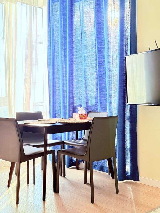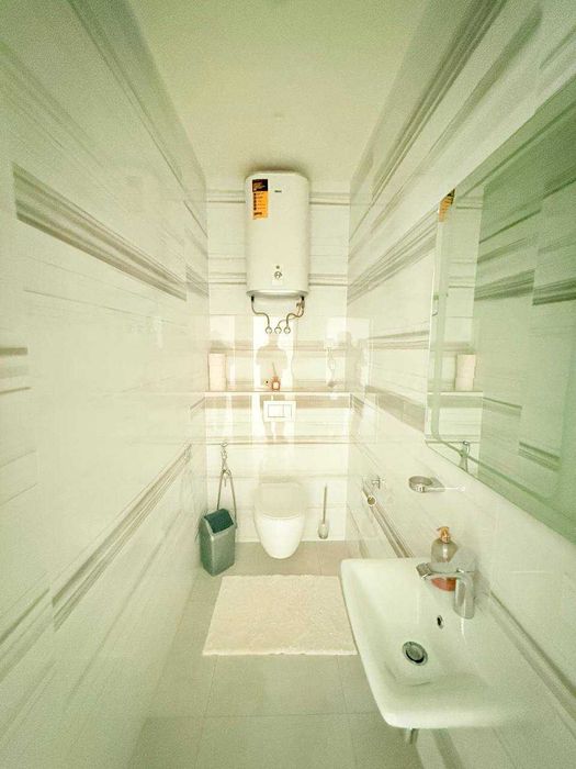 Квартира готова к заселению и полностью укомплектована всей мебелью и бытовой техникой.