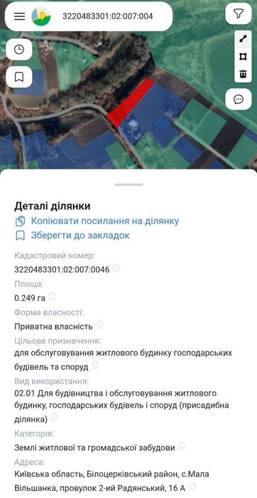Кадастровий номер: 3220483301:02:007:0046.