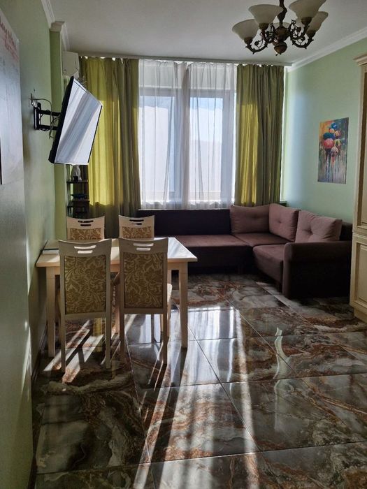 Простора та світла 1-кімнатна квартира 60 м² на 11 поверсі сучасного комплексу на березі Дніпра.