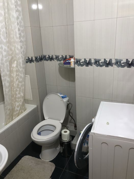 В квартирі є пральна машинка , духовка плита.