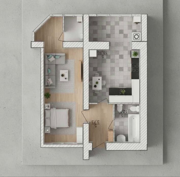 • Загальна площа: 44,5 м²