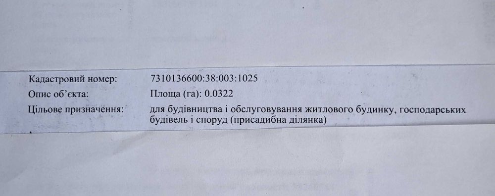 | Земельна ділянка: |
