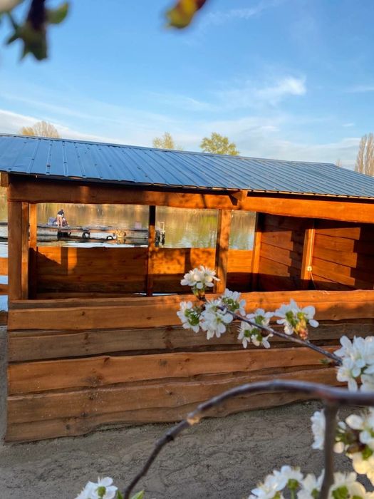 Яка включає в себе: альтанки на березі Дніпра, бар, два басейни,банний комплекс,волейбольна площадка,дитяча ігрова зона, пляж, стоянку для водного транспорту,