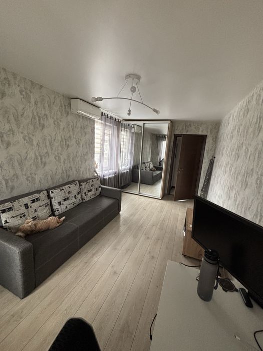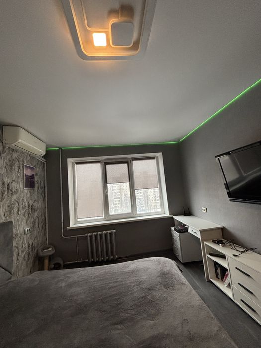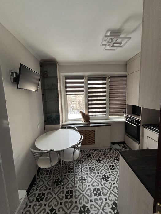 Святошинський; Продам квартиру з сучасним ремонтом в спальному районі міста.; Продам затишну квартиру з сучасним ремонтом в спальному районі міста, вул. Булаховського, 38. Від метро Академмістечко 15 хв. на міському транспорті, 5 хв. на авто. Квартира ідеально підходить для родини з дітьми, розташована подалі від міської метушні , поряд відсутні енергетичні обʼєкти, в дворі дитячий садок, поруч школа, ліс, озеро, магазини. Розташована на 8 поверсі, 3 окремі кімнати, загальна площа біля 75м3. В квартирі залишається вся вбудована техніка (машина для миття посуду, духовка, газова поверхня, витяжка), кондиціонери ( встановлено в 2-х кімнатах), бойлер, шафи купе в 3-х кімнатах та коридорі, телевізори. Не залишаємо: дивани, комоди, письмові столи. Холодильник, пральна машина - за домовленістю. Сусіди привітні, в загальному коридорі встановлено додаткові двері, в містах загального користування виконано косметичний ремонт. Документам більше 3-х років. Торг можливий.