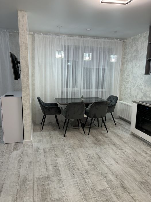 Квартира повністю мебльована, та зі всією новою побутовою технікою : холодильник, індукційна плита, духова шафа, витяжка, електро чайник, плазма, WIFI, пральна машинка, домофон.