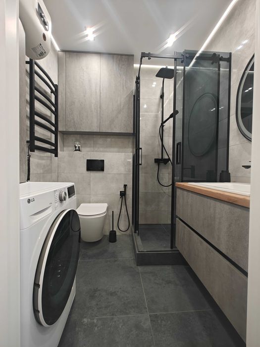 Квартира повністю укомплектована побутовою технікою та меблями.