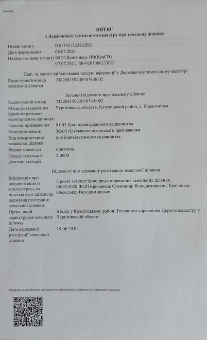 Земельна ділянка для садівництва 0.2 га; Продається земельна ділянка 2 га з цільовим призначенням 01.05. Для індивідуального садівництва біля затишного і тихого села Карасинівка, Козелецького району, Чернігівської області. За бажанням ділянку можна виокремити на 20 окремих ділянок по 10 соток Ділянка межує поруч з казковим змішаним лісом та біля асфальтної дороги з лінією електропередачі. Ідеальне місце для використання з метою будівництва котеджних мітечок чи окремо під індивідуальні дачні ділянки чи ведення крупного бізнесу з садівництва. За кадастровим номером раджу переглянути на Публічній кадастровій карті.