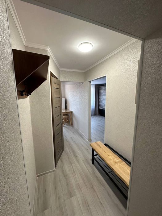 Оренда 1-но квартири мкр. Шахтарський; Оренда однокімнатної квартири на мкр. Шахтарський, 4 поверх. Новий ремонт (стеля, ламінат, шпалери, нове деревяне ліжко, новий матрац і наматрацник, нова шафа для одягу, крісла, гардини і тюлі, роутер на інтернет, діодне світло, пралка AEG, холодильник, новий деревяний стіл та табурети, дерево-метал лавка у коридорі, вішак). Санвузол готовий, колонка на гарячу воду, кухня меблі і газ-плита.