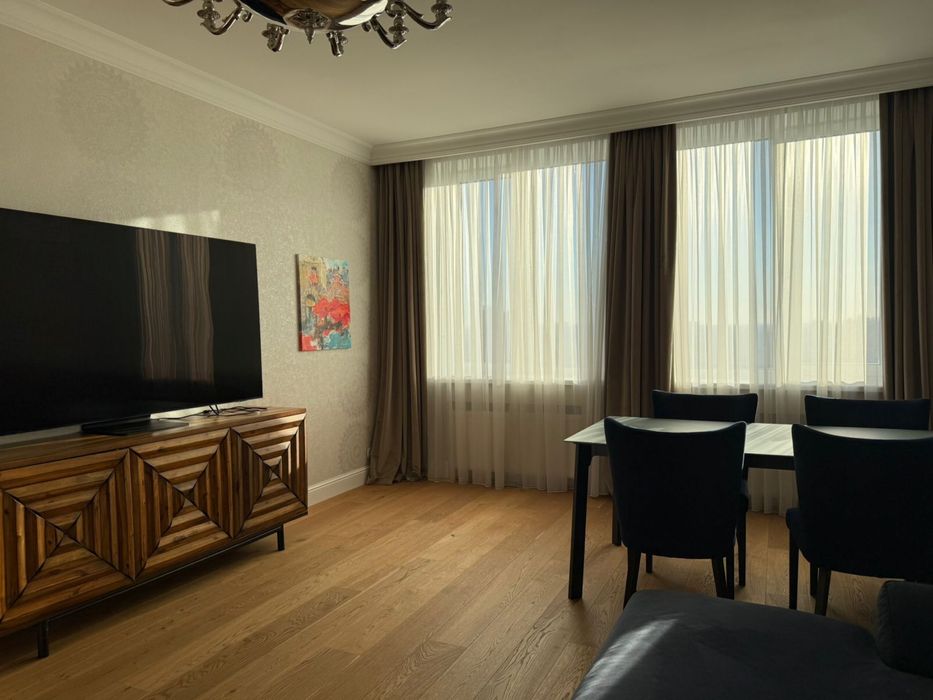 З вікон квартири відкривається чудовий вид на бульвар Лесі Українки, стадіон НСК «Олімпійський». 19-й поверх забезпечує приголомшливу панораму Печерська .