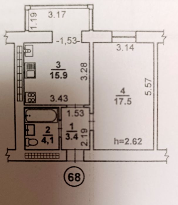 Центральний; Продам светлую и тёплую 1 комнатную квартиру, северный; 3 этаж 9 этажного дома