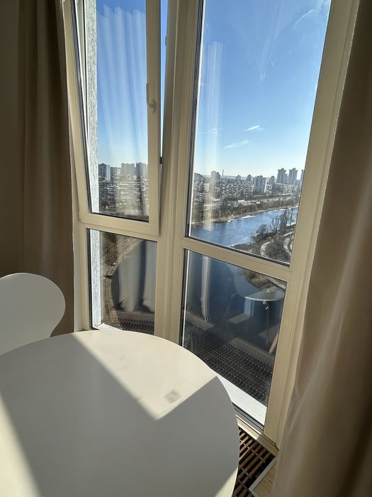 Дніпровський; проспект Соборності 30А / воззєднання 1кімнатна; Світла та затишна однокімнатна квартира площею 54 м². Квартира тепла, з великими вікнами та красивим видом на Русанівську набережну.