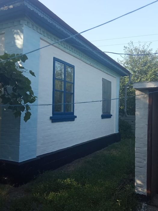 Продам будинок смт Чорнобай Черкаської обл; Продаю будинок Чорнобай цегляний 60 кВ м 3 кімнати, велика кухня, коридор, веранда, деревяна підлога, газ, вода, туалет, ванна. Літня кухня газифікована, господарські будівлі, погріб, колонка, металевий паркан, підмурок на гараж, пісок, щебень. Участок 25 соток. Приватизовано. Поруч річка. Асфальт по вулиці.