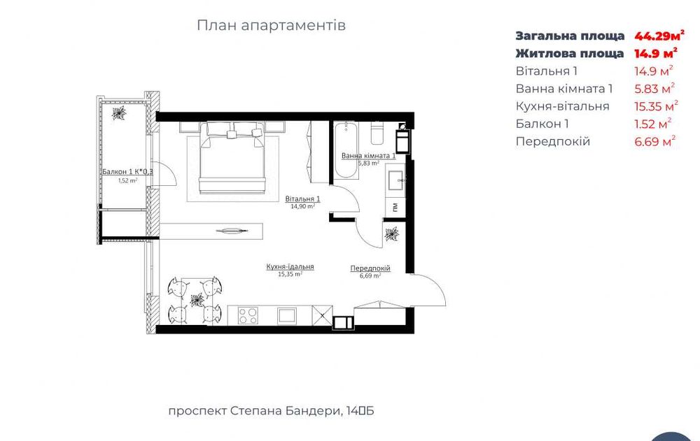 площа 44м2