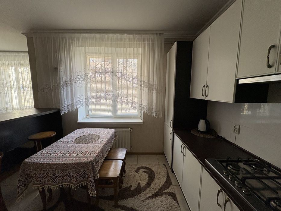 У квартирі простора кухня-студія, кімнати. На підлозі паркет та плитка, встановлена тепла підлога. Є двоконтурний газовий котел, підключені всі необхідні комунікації.
