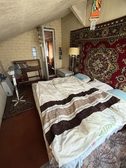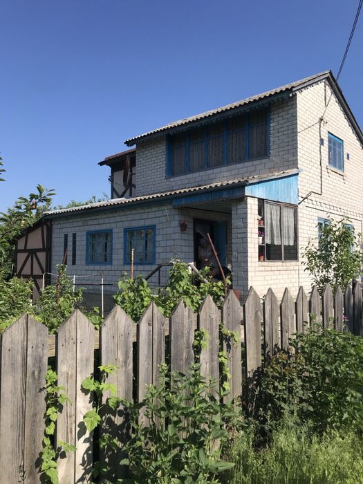 Дача двоперхова з 4 кімнатами, вірандою, ґанком, балконом, ванною та кухнею-столовою. Город, сад, беседка