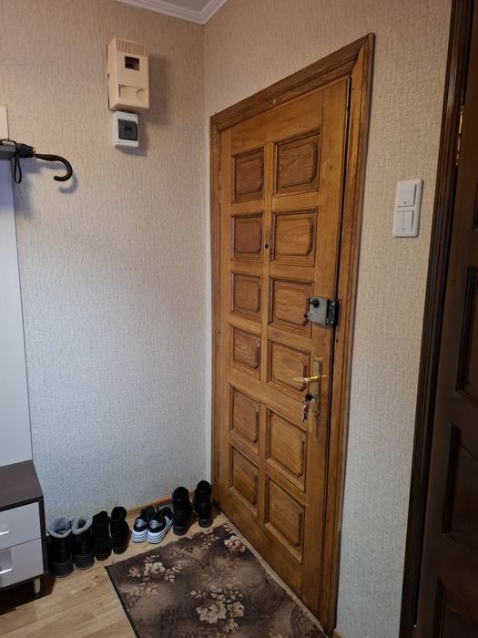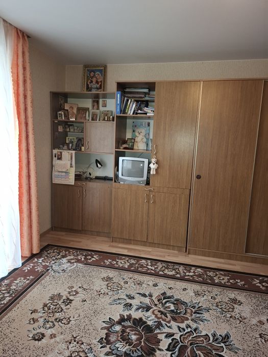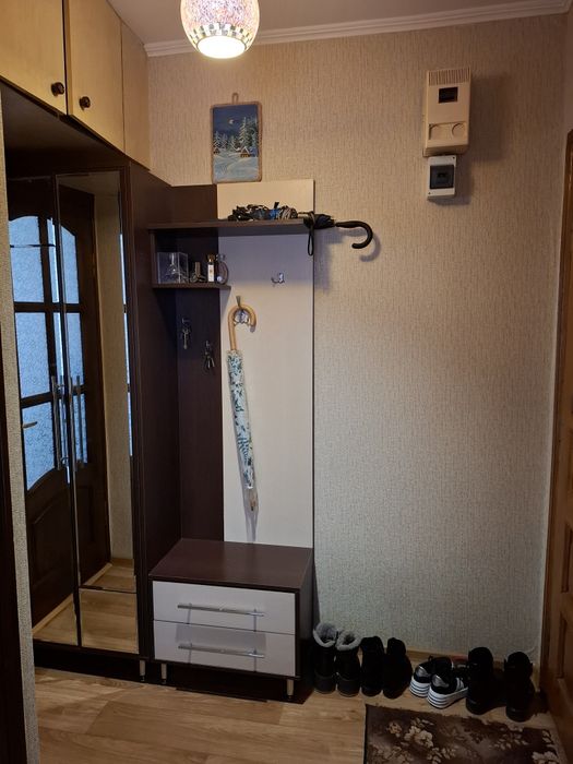 Кімната: ламінат, натяжна стеля, шпалери, дві великі батареї. У квартирі встановлений газовий котел Immergas, розрахований на 100 кв. м.
