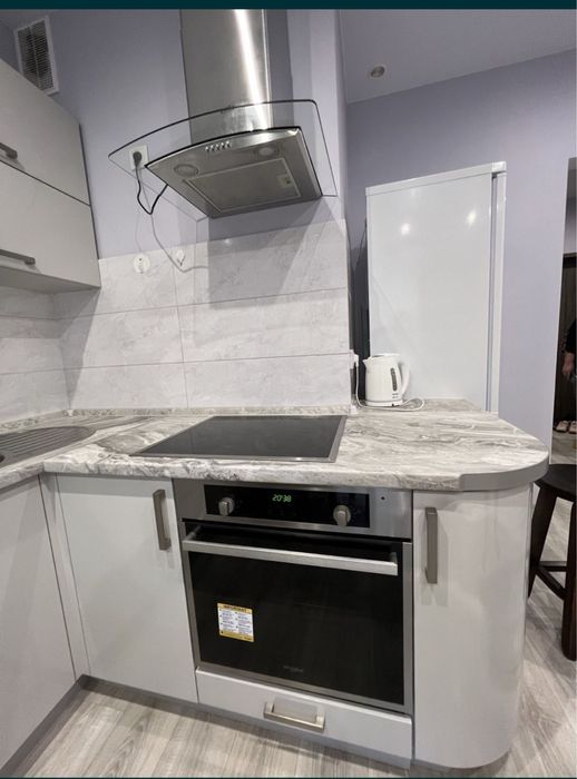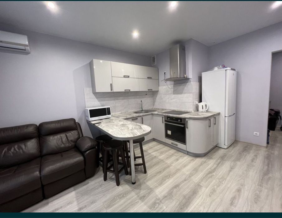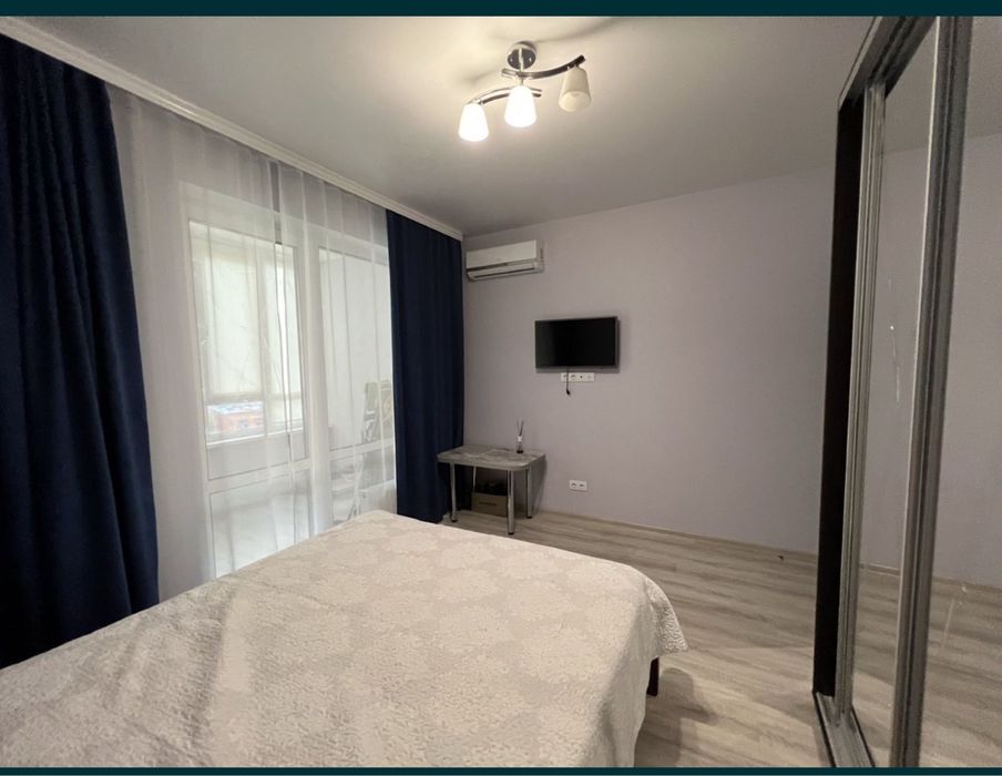 Квартира с ремонтом ,окна выходят во двор , просторная кухня студия с диваном , ТВ и кондиционером . На кухне есть вся необходимая мебель и техника ( кроме посудомоечной) Большой коридор с шкафом купе . Спальня так же шкаф купе , двух спальная кровать , ТВ , кондиционер и выход на балкон . Балкон застеклен .