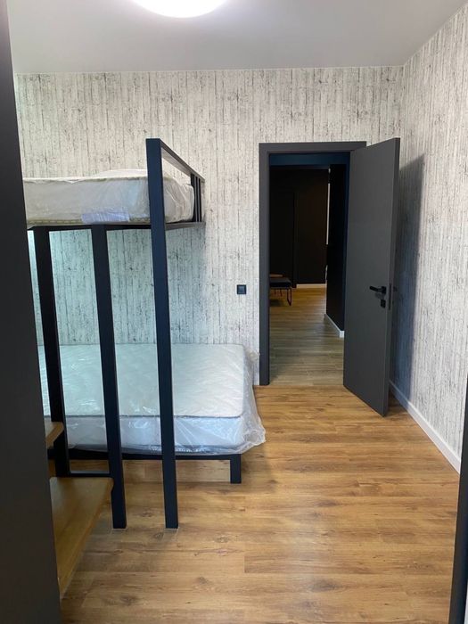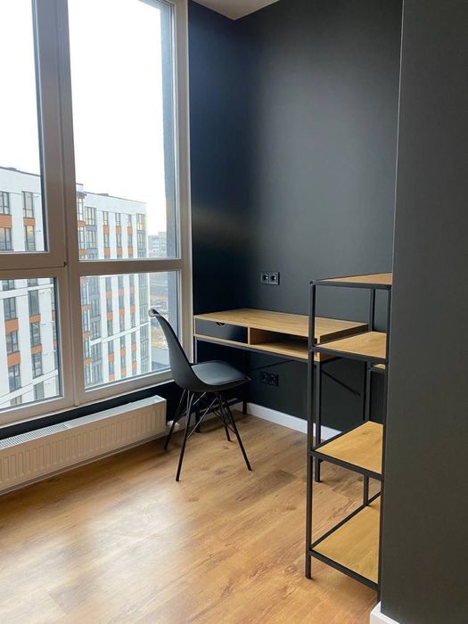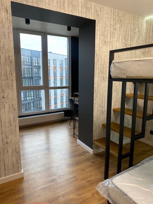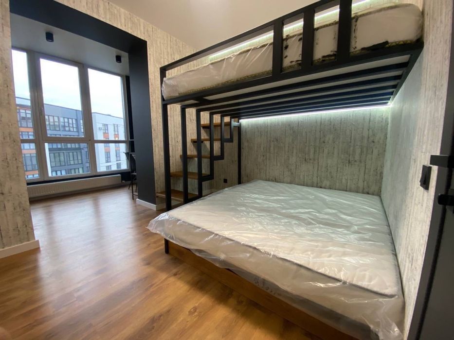 Простора спальня з прекрасним виглядом на міське озеро (ролети на вікнах); дитяча або гостьова з дворівневим двоспальним дизайнерським ліжком лофт комлектації (ролети на вікнах); простора робоча (офісна) зона;