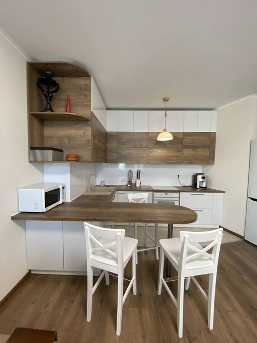 • Техніка: Кухня обладнана індукційною плитою, духовою шафою та посудомийною машиною.