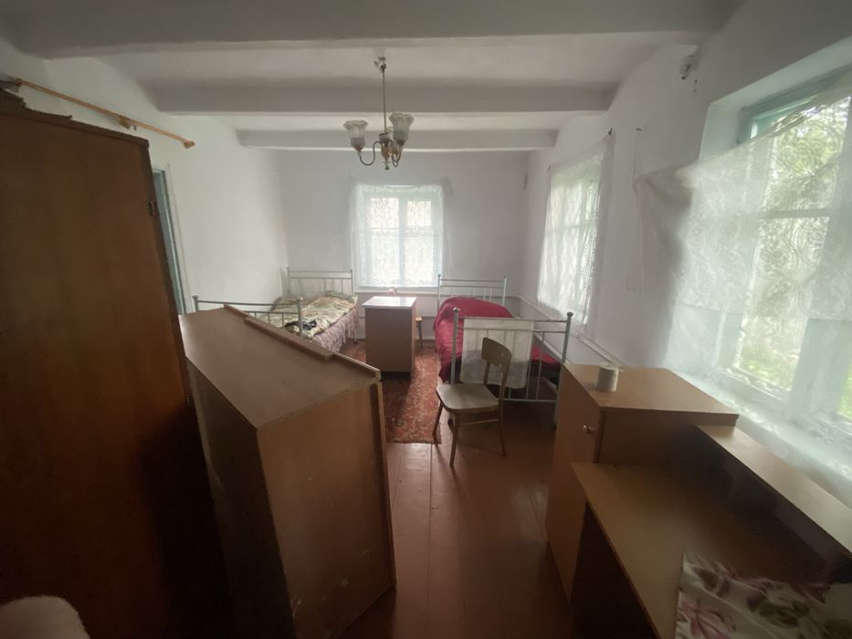 будинок у селі; пром будинок , великий просторий який має 4 окремі кімнати, кухню у якій є газ, плита на дровах , газова прита , у будинку є світло, вода біля будинку на територііі, висота потолків 2,5 мет, вікна великі , земля рівнина , земля приватизована документи усі в порядку оформлені, інші споруди відсутні є тільки погреб, город великий підтримується у чистоті , у еімнатах є оторлегня батарей та грубки на дрова , село велике , живе у селі є магазини, школа, садочок , село асвальтоване ,