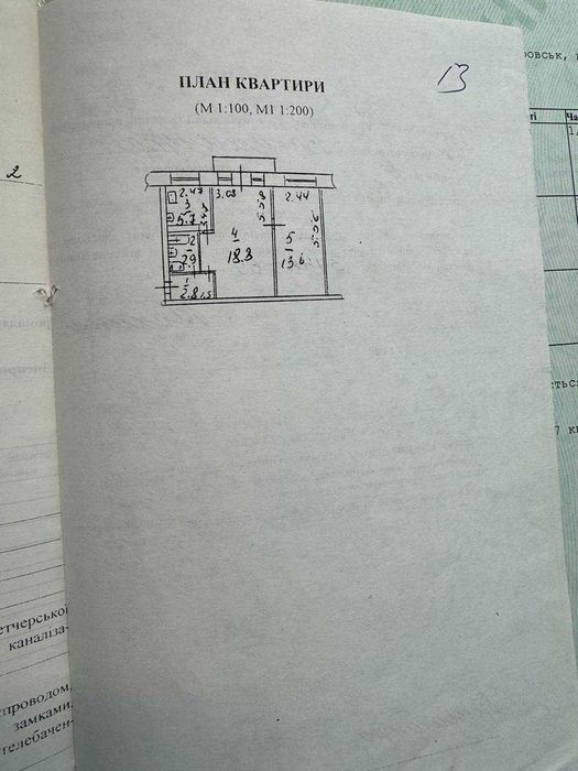 Загальна площа становить 44,6 кв., житлова площа - 32,4 кв.м., кухня - 5,7 кв.м.. Суміжний санвузол. Поверх: 5/5. Будинок цегляний. Є балкон, не засклений.