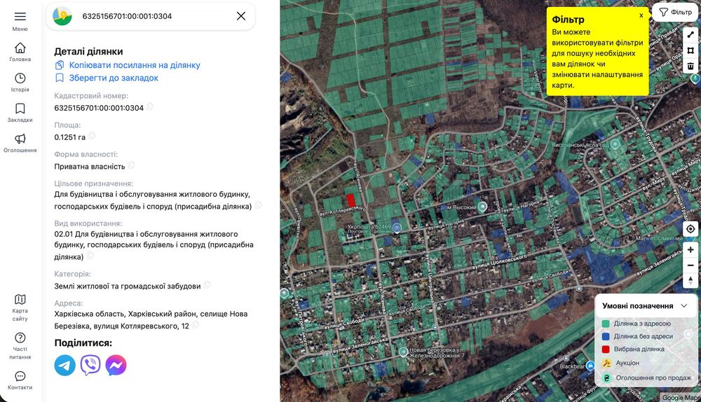 | Земельна ділянка: |